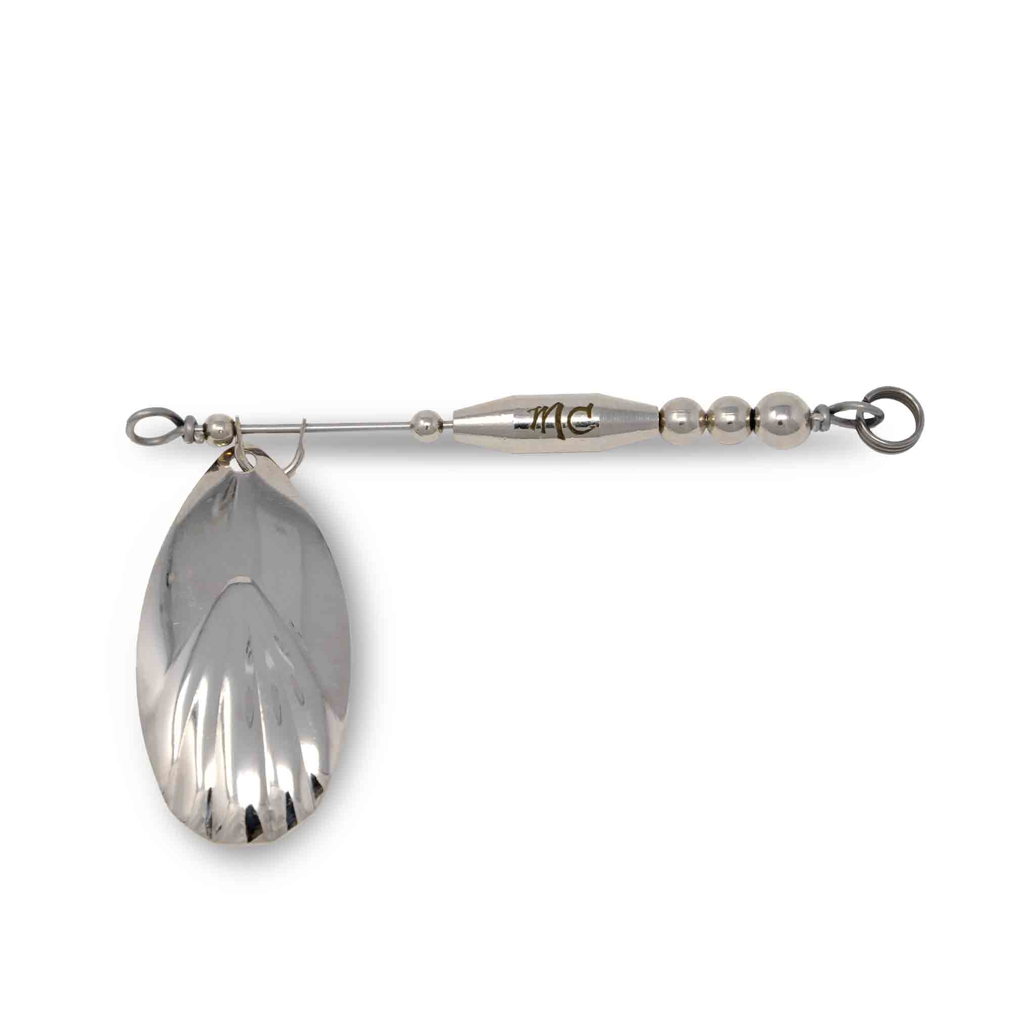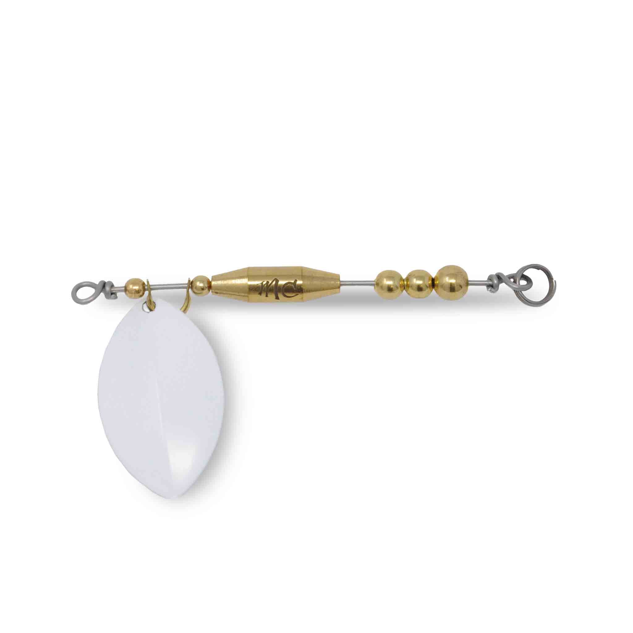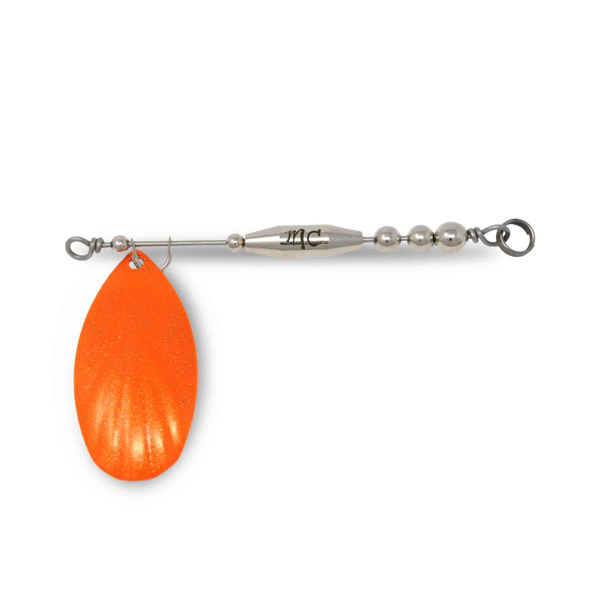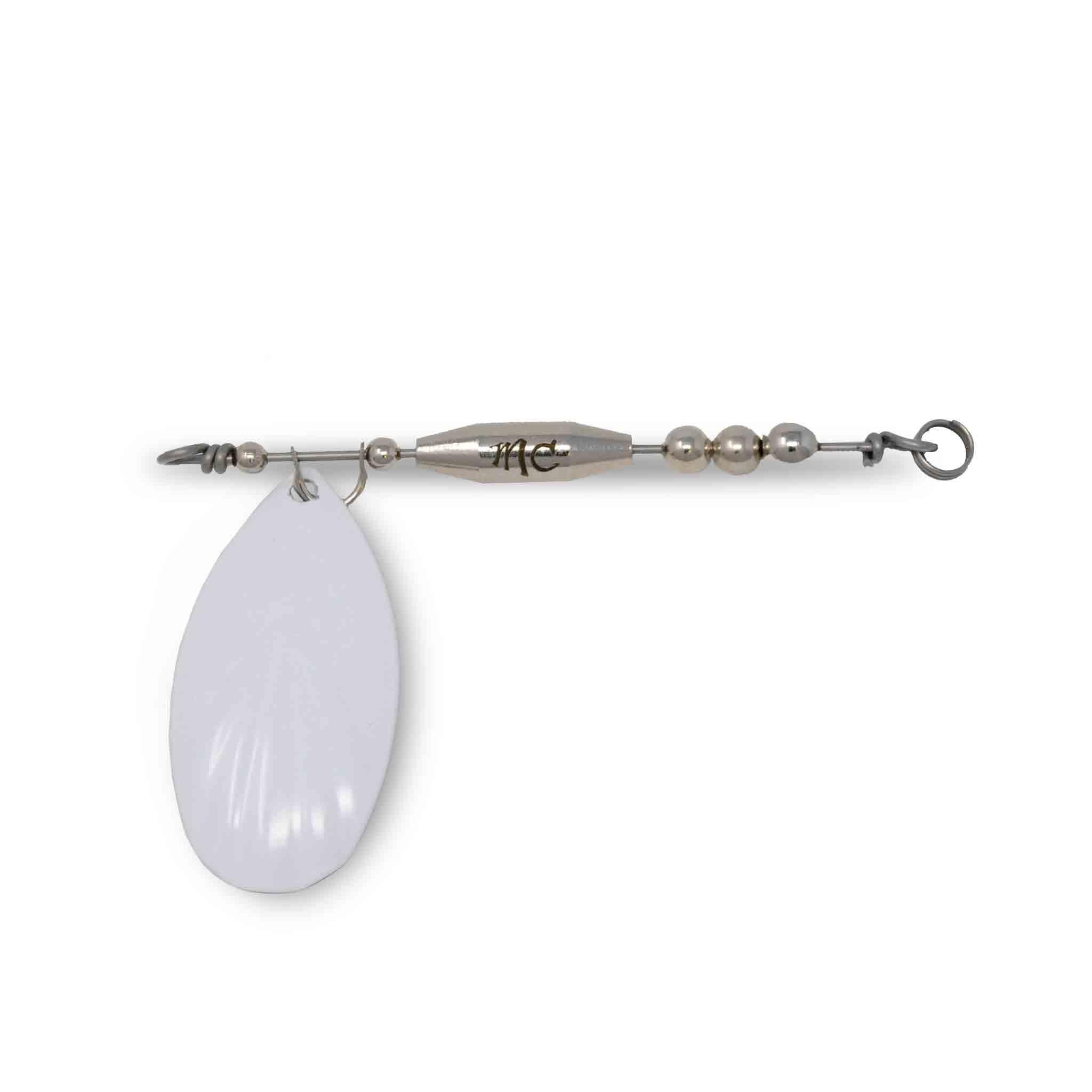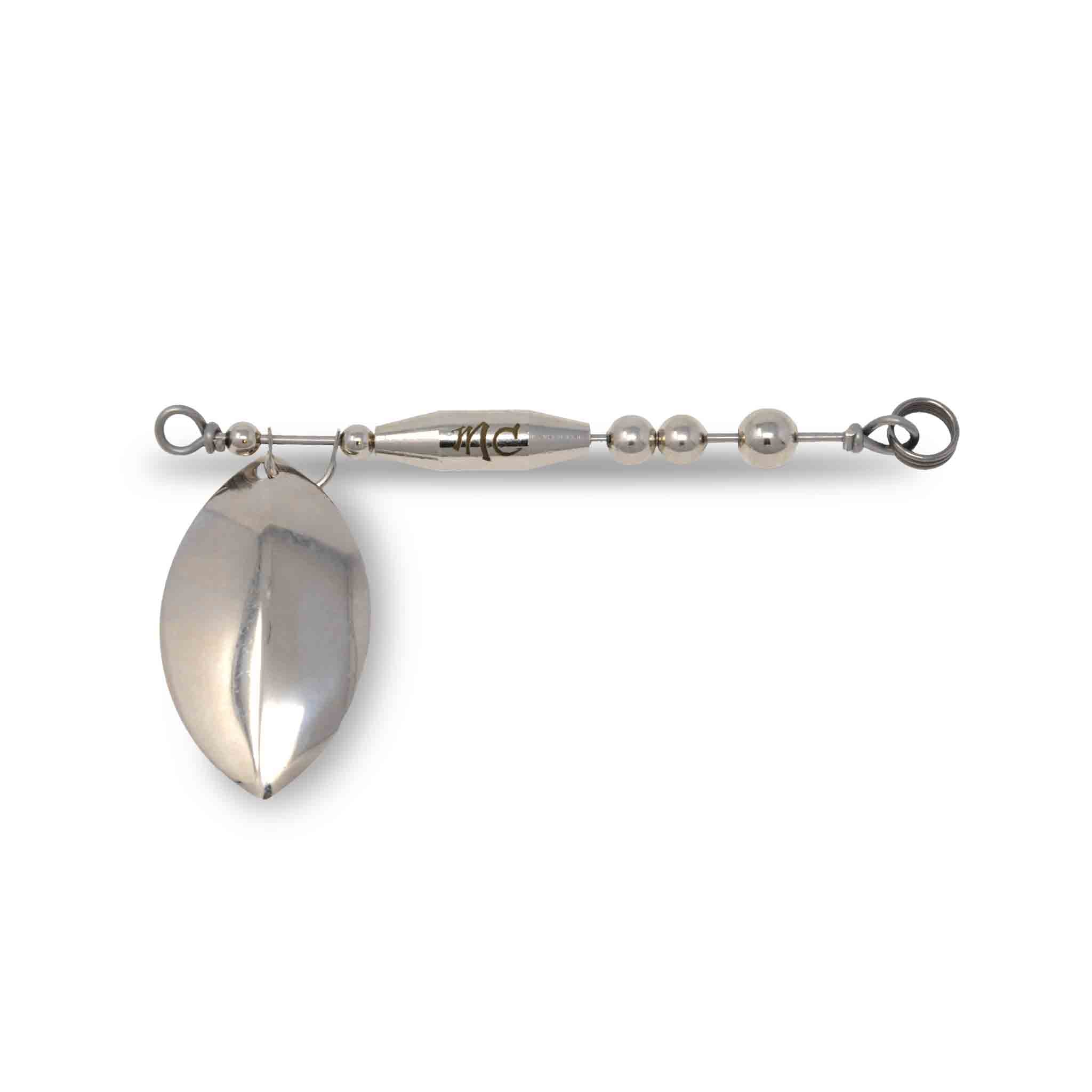 Le Mad Chasse Inline attachment est construit autour d'un axe en fil de 0,062 pouces, avec un corps gravé au laser, 5 billes, une lame simple (feuille de saule ou cannelée) et se termine par un anneau brisé en acier inoxydable #7 Wolverine Tackle pour l'attacher en toute sécurité à vos leurres ou mouches. Longueur de 4,75 pouces pour un poids de 1,1 oz.