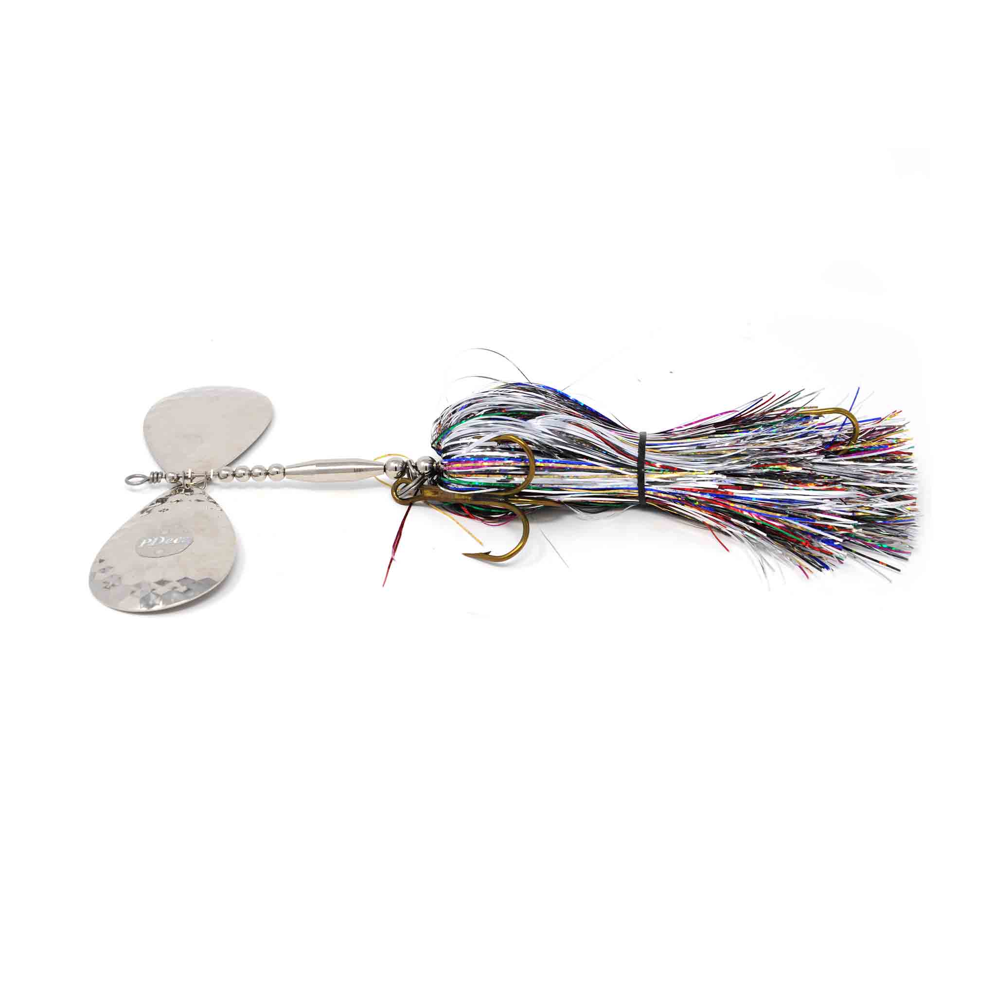 Les PDeez Big Tens (10/10) sont dotés d'une tige en fil d'acier inoxydable de .051 pouce, de 2 palettes magnum #10 de .025 pouce et de 2 jupes flashabou faites à la main scellées à double paroi. Ils sont équipés de 2 hameçons triples Mustad premium #7/0 et d'anneaux brisés extra lourds en acier inoxydable de 120 lb.