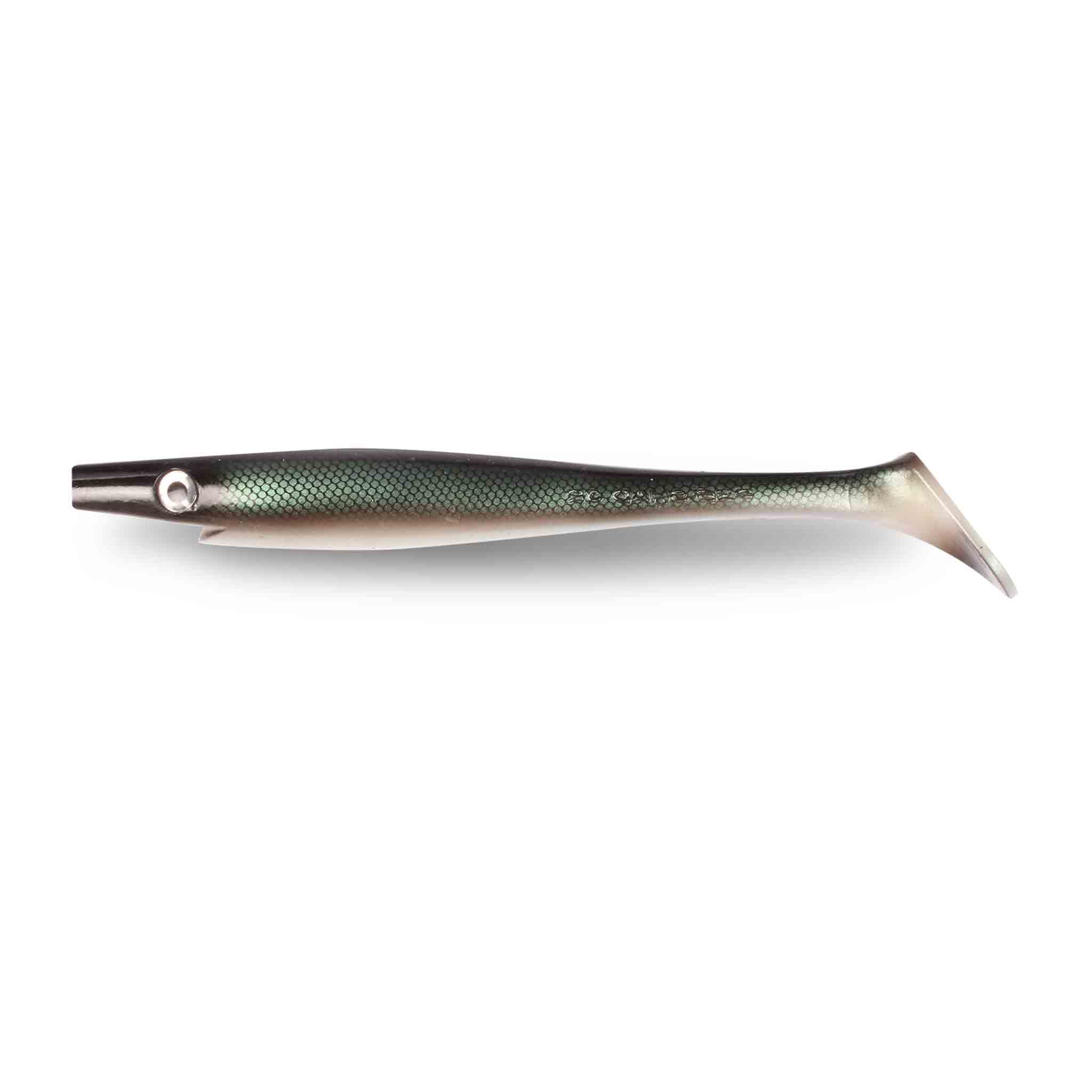 Le Pig Shad a un profil unique qui ressemble à celui d'un gros poisson fourrage. Il est excellent à utiliser avec des têtes plombées ou avec un harnais externe.