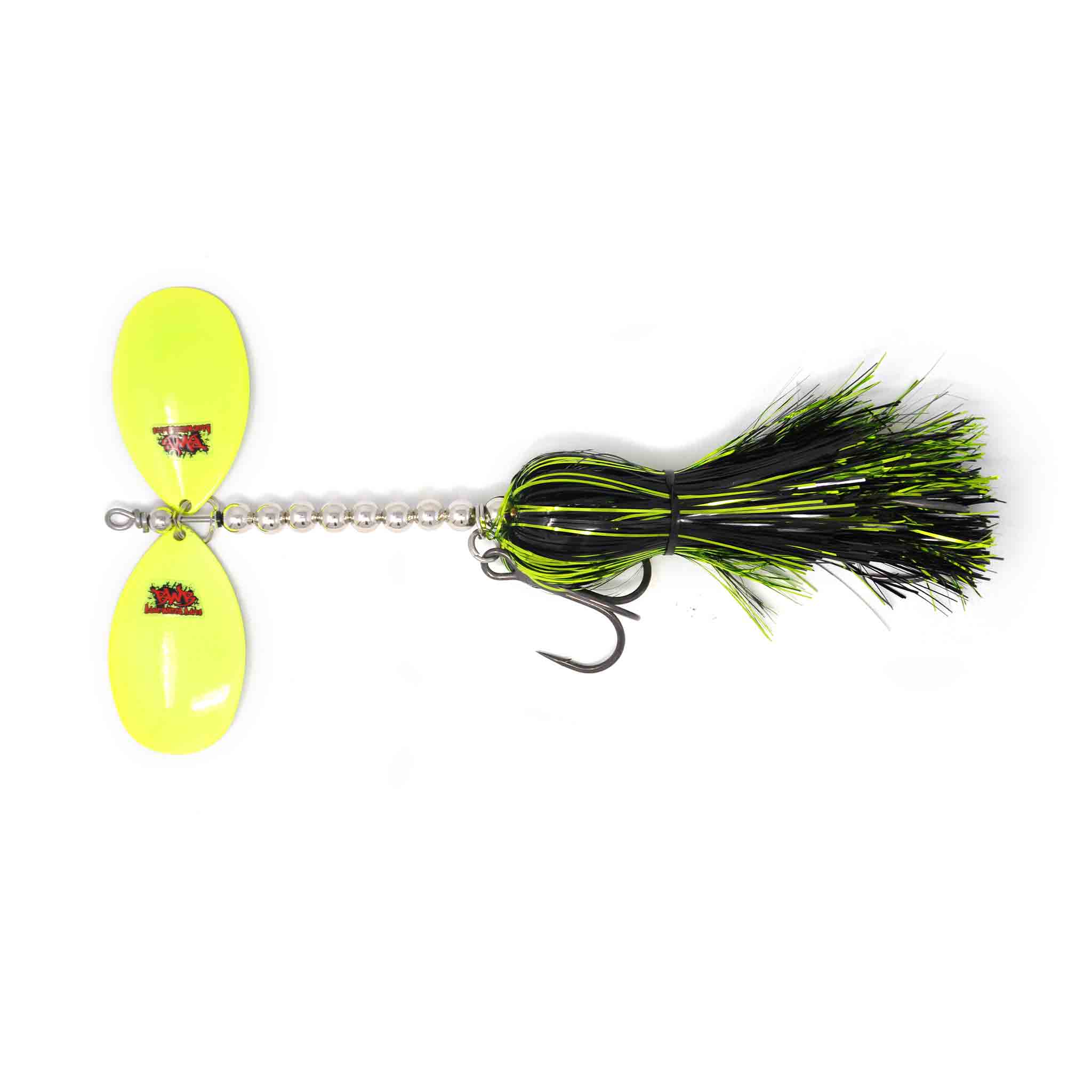 - Dual Flashabou skirts – Explosive movement and flash that provoke monster musky into committing.