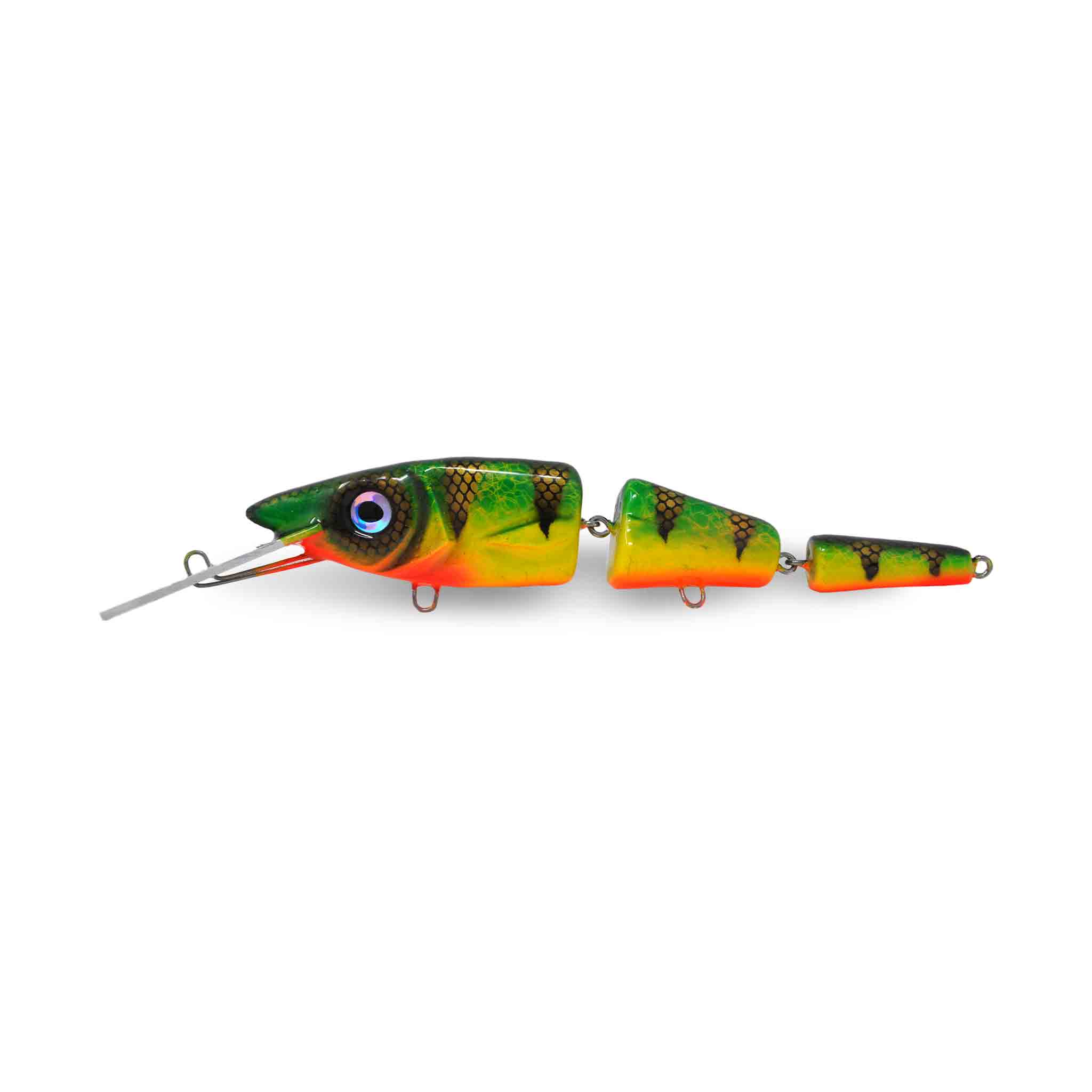 No two lures are identical as each MadBait Double-Jointed 10'' crankbait is adorned with hand-painted finishes so realistic they'll fool even the most seasoned muskellunge connoisseur. The striking color patterns radiate beneath water surfaces like true aquatic inhabitants—a visual feast that triggers instinctive strikes from these freshwater beasts!